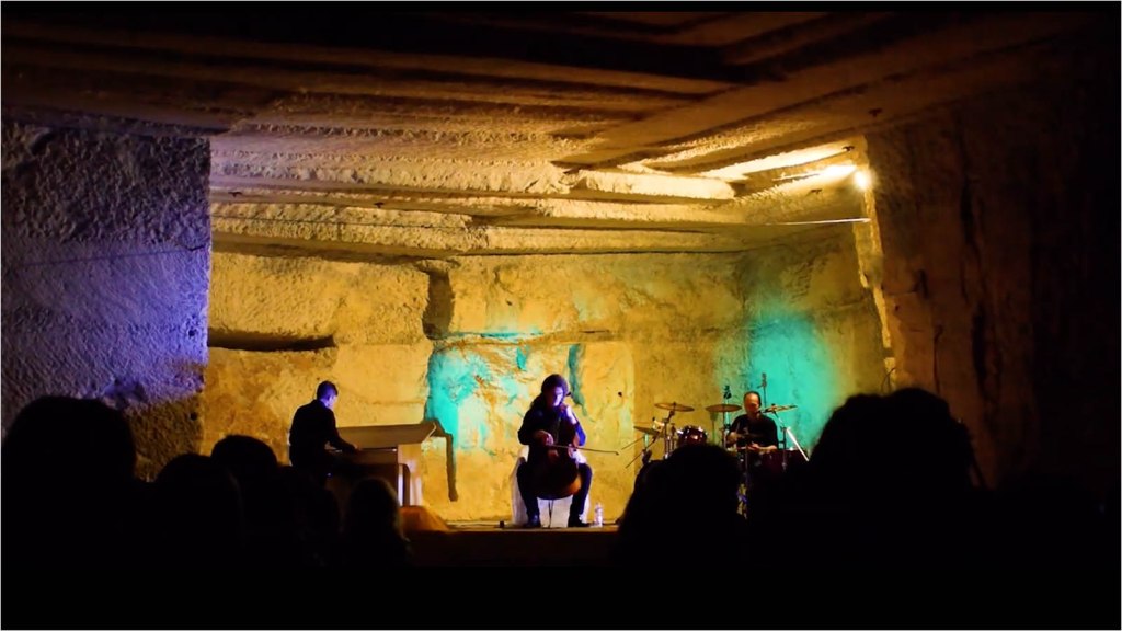 The Holographic Show is an interaction between Celpidrum’s live performance and a cinematic experience projected in front of the band. Thanks to a large size semi-transparent lightweight tulle, the projection create an immersive experience where the band blend with the moving image. Aerial scenery, landscapes and city scenery were carefully selected and edited by Celpidrum for their Holographic Show. See below some still frame or watch the Sonata Aria III.