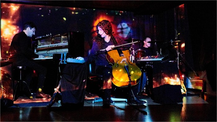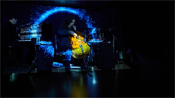 Mentre lo Show Olografico viene projettato su un livello singolo questo spettacolo utilizza una mappatura 3D; trasformando lo spazio attraverso le video-proiezioni. Forme astratte e colori interagiscono con i musicisti ed i loro strumenti creando un esperienza sinestetica unica.